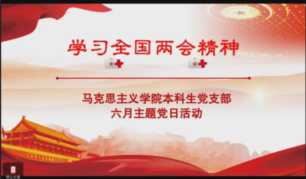 支部党员就全国两会期间时事政治、热点话题等进行讨论交流。侯晗倩、钟杰等同志对“港版国安法”的内容较为关注,认为“港版国安法”,对于解决中国内政问题具有重大意义,能够为更好地治理香港问题、促进香港今后发展提供制度基础。姚远翔、吕念、胡铭等同志则更侧重于民法典,一致认为,民法典是一本社会生活的百科全书,贴近人们的生活,囊括婚姻冷静期、居住权、合同问题等方方面面的社会民生问题,因而关乎公民的切身利益。另外,姚奇君同志从两会关键词“六稳六保”出发,分享了对脱贫攻坚的学习体会。与会党员纷纷发表自己的学习体会,通过讨论、交流提高了学习效果。