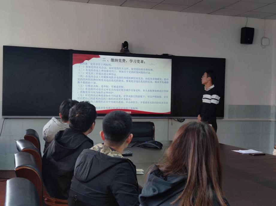 11月26日下午,研究生第一党支部在公司四楼会议室召开11月份主题党日活动,公司党委秘书邹浩列席。支部纪检委员黄飞鸿主持活动。