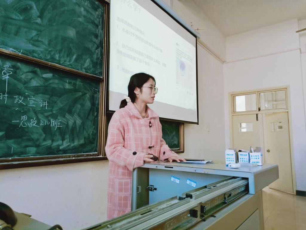 2018级思想政治教育专业、直博生张晶晶为大家介绍自己的保研历程,她从论文发表、四六级考试、学科竞赛和社会实践等方面进行了分享。