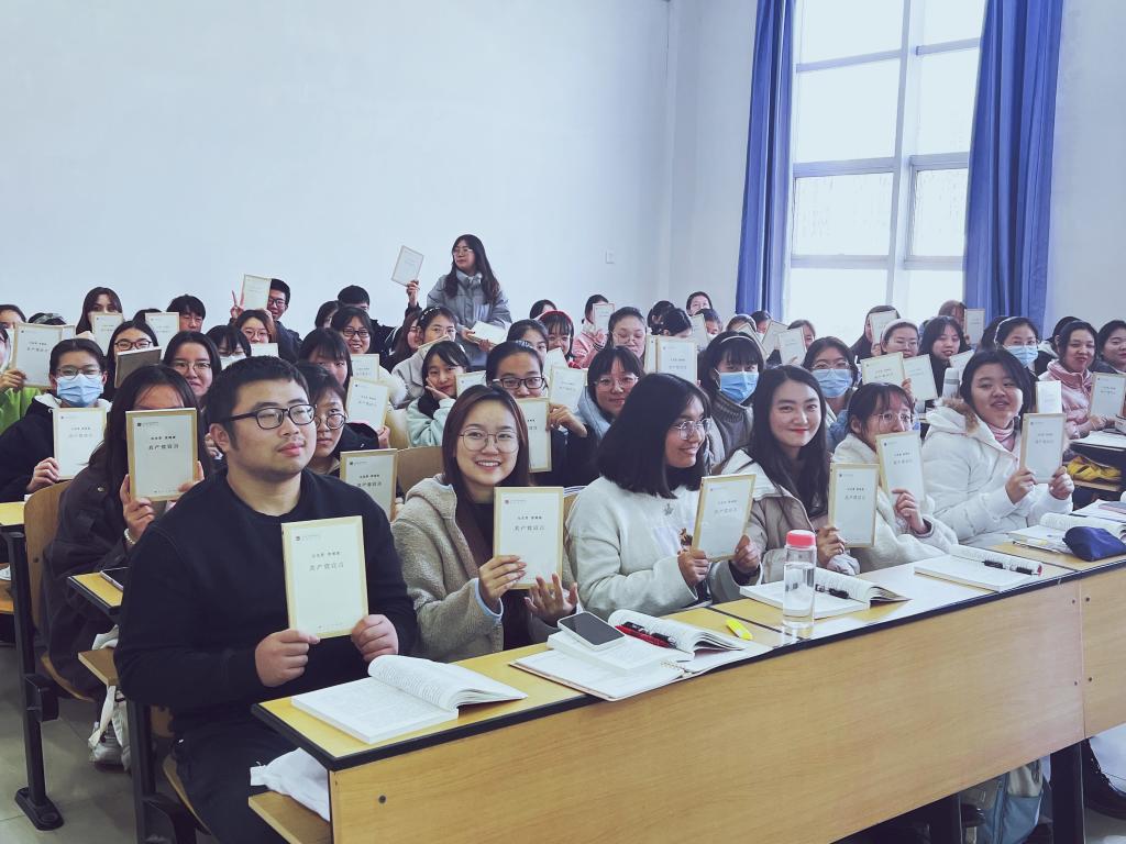 分享结束后,博士生支部党员为2021级每位同学赠送了一本《共产党宣言》,任怡师姐向大家介绍了这本马克思主义经典著作的内容,她说对于一部经典既想一口气读完,又舍不得读完,希望大家好好阅读,期待下次和大家分享读书感受!