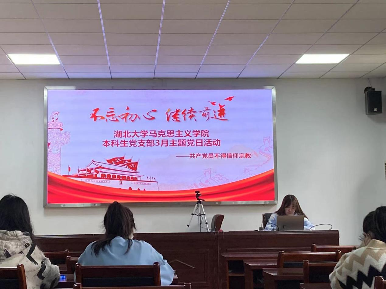 3月31日,William希尔官网入口本科生党支部开展了主题为“共产党员不得信仰宗教”的三月份主题党日活动暨2021年度组织生活会、党员民主评议会。会议由支部书记张晶晶主持。
