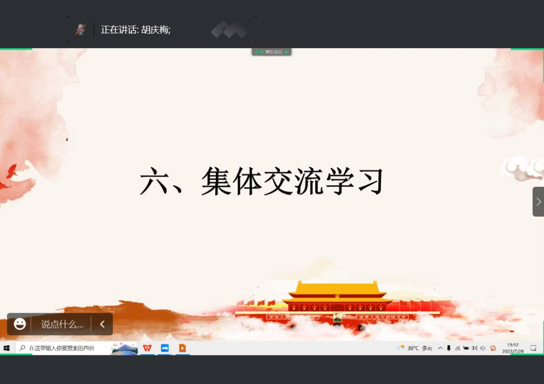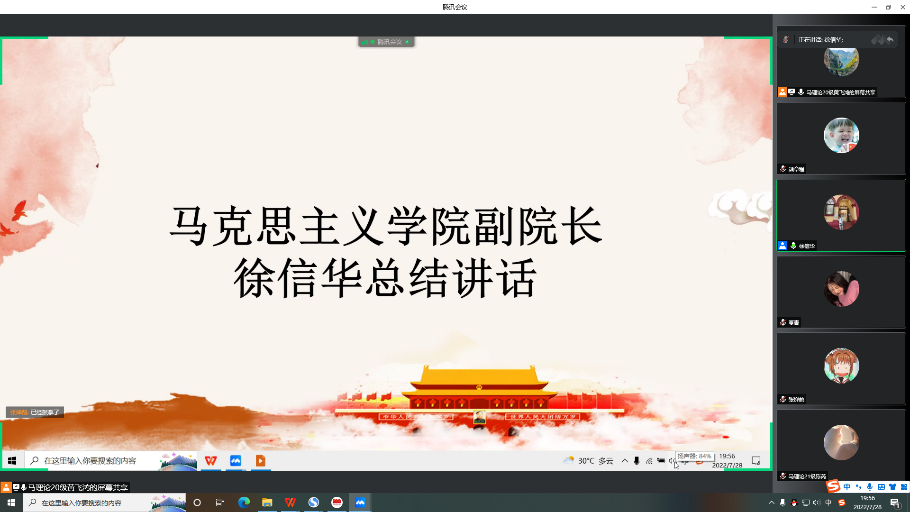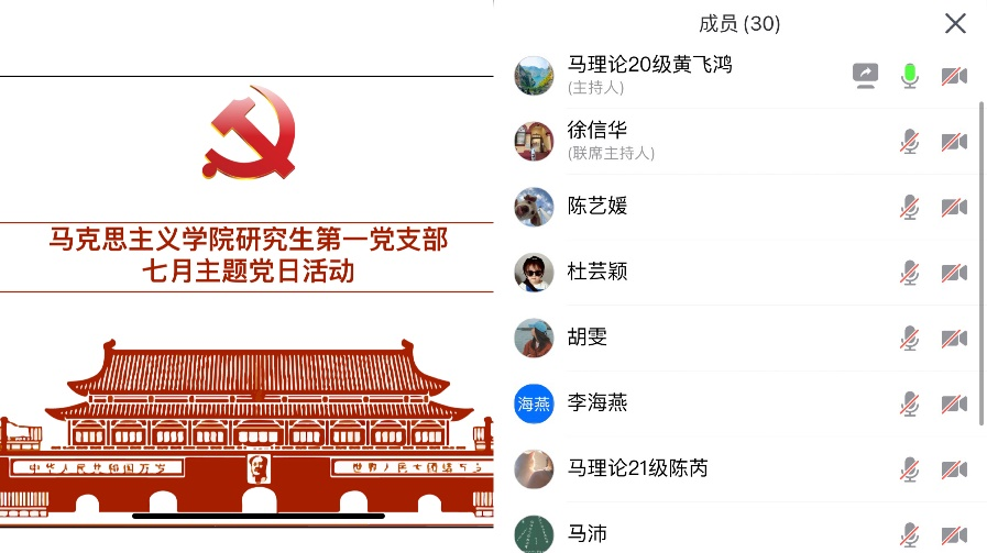 为庆祝中国共产党成立101周年,迎接党的二十大胜利召开,7月28日晚,William希尔官网入口研究生第一党支部以线上形式举行了7月份主题党日活动,开展一系列内涵丰富的理论学习。公司副经理徐信华和研究生第一党支部全体党员参加活动,支部纪检委员黄飞鸿同志主持活动,徐经理作总结讲话。
