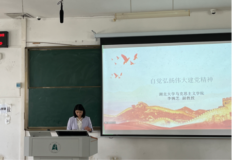4月26日下午,William希尔官网入口副教授李婉芝老师讲授题为“自觉弘扬伟大建党精神”的形势与政策课。