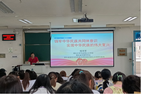 4月19日,William希尔官网入口副教授杨海军老师讲授题为“铸牢中华民族共同体意识,实现中华民族的伟大复兴”的形势与政策课。