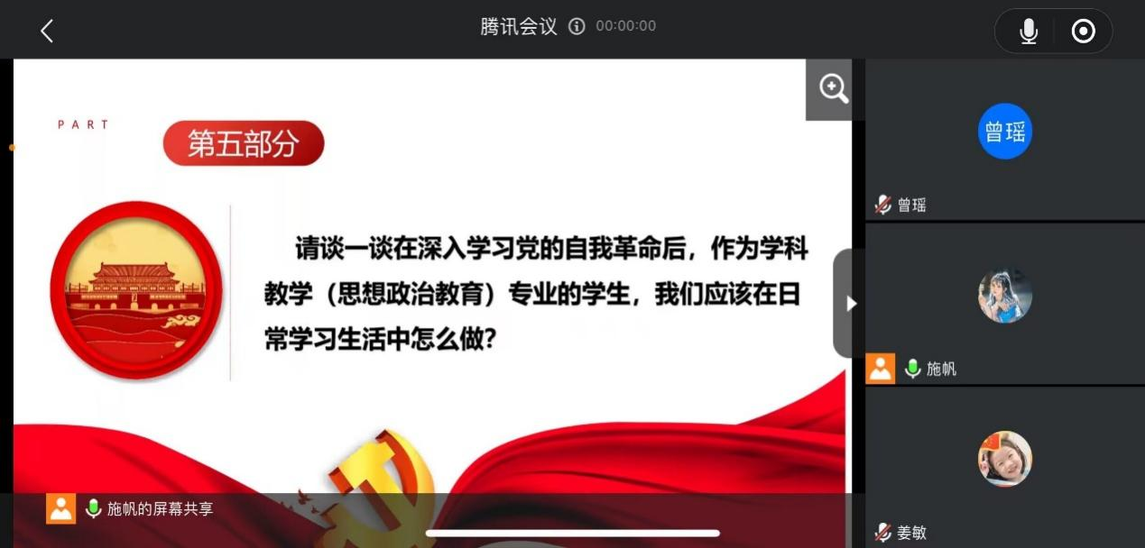 9月7日下午四点,研究生第二党支部在线上开展主题为“党的自我革命”的党日活动。研究生第二党支部全体党员参加会议,支部纪检委员施帆同志主持会议。