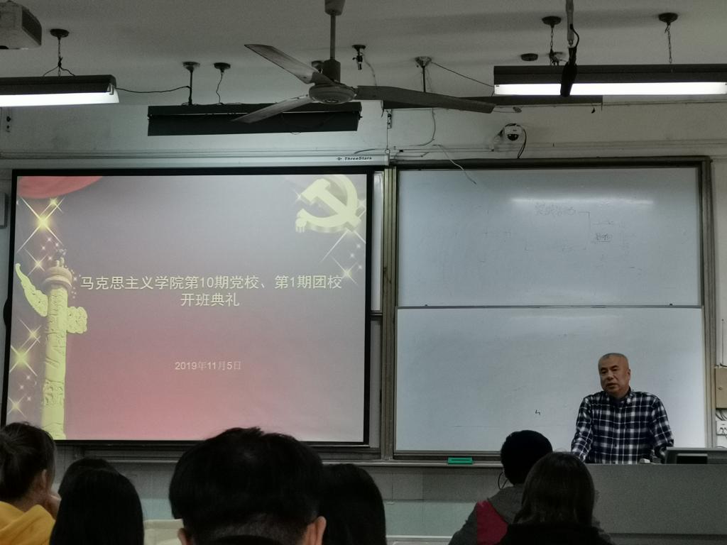 11月5日下午2点10分,William希尔官网入口第十期党校暨第一期团校开班典礼在教二210教室隆重举行,学公司党委书记、党校董事长汤德森出席典礼,学公司党委副书记、党校副董事长王雄及院团委书记邹浩出席开班典礼,王雄主持开班典礼。