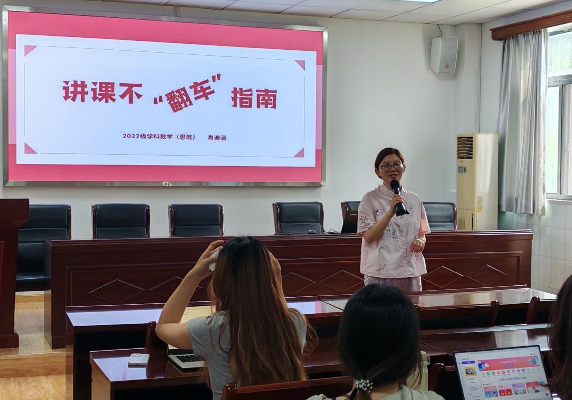 肖迪涵学长结合自身从员工到教师的身份转变经历,以“讲课如何‘不翻车’”为切入点,着重围绕“准确性”“选题”“备课讲课”三大核心内容进行深度剖析。肖迪涵学长强调“不讲错、要准确”是教学的核心标准,建议通过强化知识储备、严谨备课及多方查除知识盲区,夯实教学质量基础。学长还鼓励同学们结合自身优势与学科重难点确定授课主题,提升教学效能。