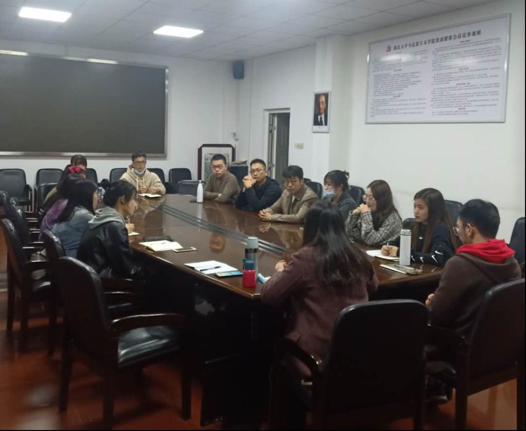 首先,研会全体成员进行了自我介绍,主席段艳丽从日常管理、部门职能、部门分管等方面介绍了研会的整体情况,并对近期工作进行安排,同时,两位副主席就各自所分管部门的具体事务作了补充说明。其次,段艳丽带领研会全体成员学习了《员工会、研究生会干部自律公约》和共青团中央、教育部、全国学联印发《关于推动高校员工会(研究生会)深化改革的若干意见》的通知,研会成员结合自身已有的员工工作经历交流并分享了学习心得。在交流分享中,副主席李想表示,研究生会给我们提供了锻炼的机会和提升自己综合能力的平台,要坚决反对“官僚”之风,始终秉持和践行为广大师生服务的理念和宗旨,做到但行好事、莫问前程。熊章程、张婵鹄、孟祥威等新干事在发言中表示,研会是一个新的起点,要重新学习、重新出发,要主动做事、敢于担当,要乐于服务、甘于奉献。