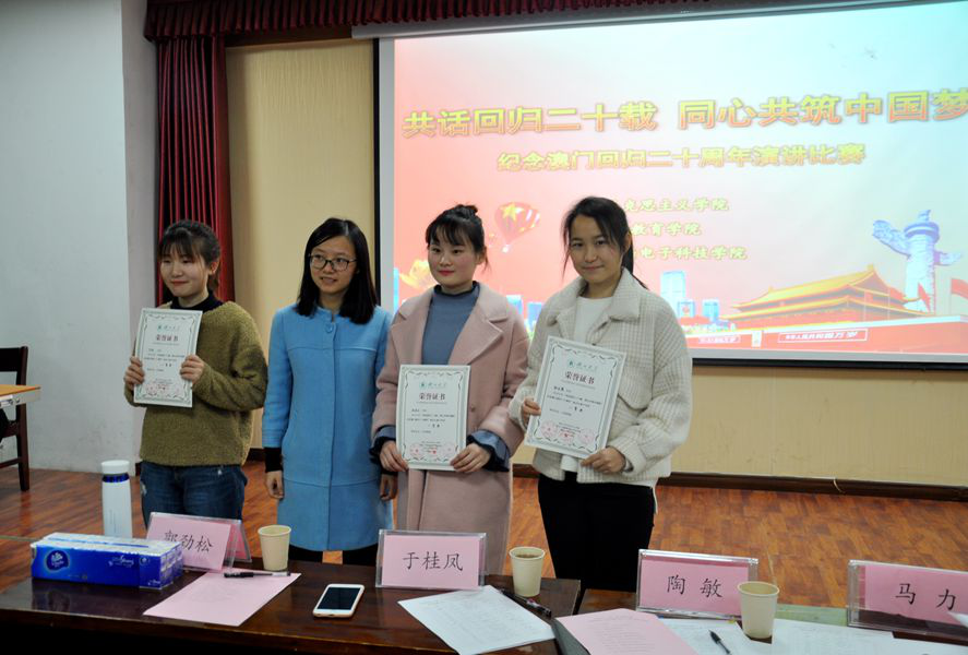 为纪念澳门回归二十周年,激荡广大青年员工的爱国情怀。12月13日下午,公司和物理与电子科技公司、教育公司在物理与电子科技公司314教室联合举办以“共话回归二十载·同心共筑中国梦”为主题的演讲比赛。William希尔官网入口郭劲松老师、于桂凤老师,物理与电子科技公司陶敏老师、教育公司马力老师受邀担任此次大赛的评委,三院50余名研究生参加了此次活动。