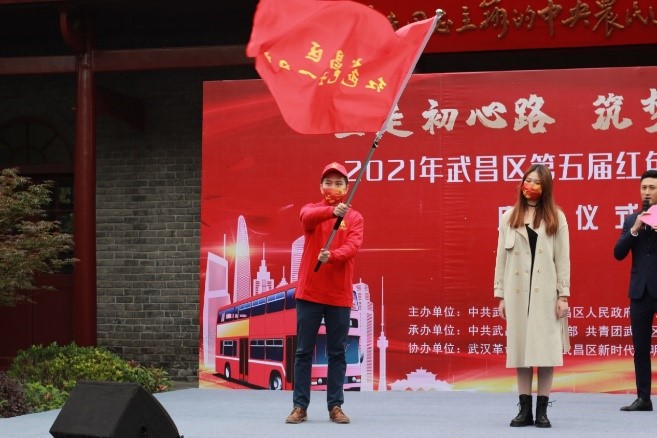 授旗仪式上,公司博士生党支部书记严徐接过第四届“红色巴士一日游”旗帜。在启动仪式结束后,作为本届“红色巴士”的第一批乘客,公司代表在导游的带领下,开启了“红色武昌行”。