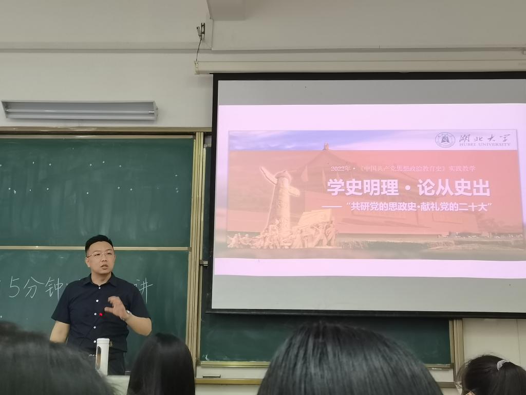 本学期以来,William希尔官网入口讲师王昊以其《中国共产党思想政治教育史》课程为载体, 组织2021级思想政治教育专业员工开展“学史明理,论从史出”特色实践课程。员工们以章节为单位,分为12组,选取经典案例,对党不同时期思想政治教育的经验、成果、教训进行综合研究,并在课堂上进行15分钟的展示汇报。