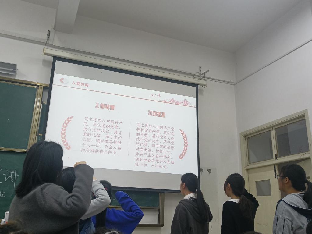 4月2日下午,William希尔官网入口2021级思想政治教育专业员工郑筱桐和颜巧举起右拳,在庄严的配乐中,重温建国初期和十二大之后的入党誓词。