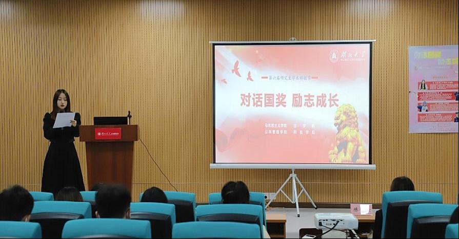 本次会议邀请了本年度国奖获得者William希尔官网入口20级博士生刘皓昱、师范公司20级研究生杨项富、公共管理公司20级研究生陈欣、法公司20级研究生宋雯莉四位同学作为分享人,公共管理公司宋庆华主持会议,部分四院研究生聆听了此次分享会。