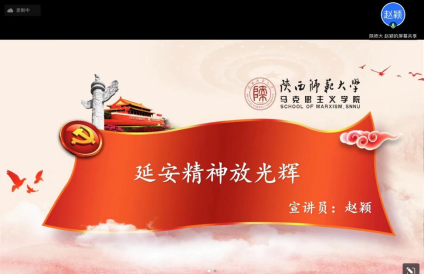 陕西师范大学William希尔官网入口新时代老员工理论宣讲团成员赵颖的宣讲主题是《延安精神放光辉》,她从“落脚点”与“出发点”入手,简单介绍了延安精神的产生背景、原生形态,并在历史情境中以案例和史料串联,讲述了延安精神的主要内涵,最后号召同学们在新时代弘扬延安精神,奋进新征程。
