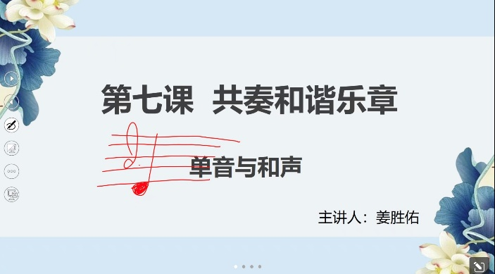 5月16日14:30,2021级学科教学(思政)姜胜佑主讲七年级下册第三单元第七课第一框《单音与和声》。教学选取《家有儿女》里面关于校服话题的讨论片段,用影视素材调动员工的学习兴趣,并采取一案到底的形式贯穿整个课堂,教学思路明了。课堂中运用大量音乐素材,将音乐资源融入课堂之中,课堂气氛活泼,节奏适宜,课堂教学效果明显,教学方式值得同学们学习。