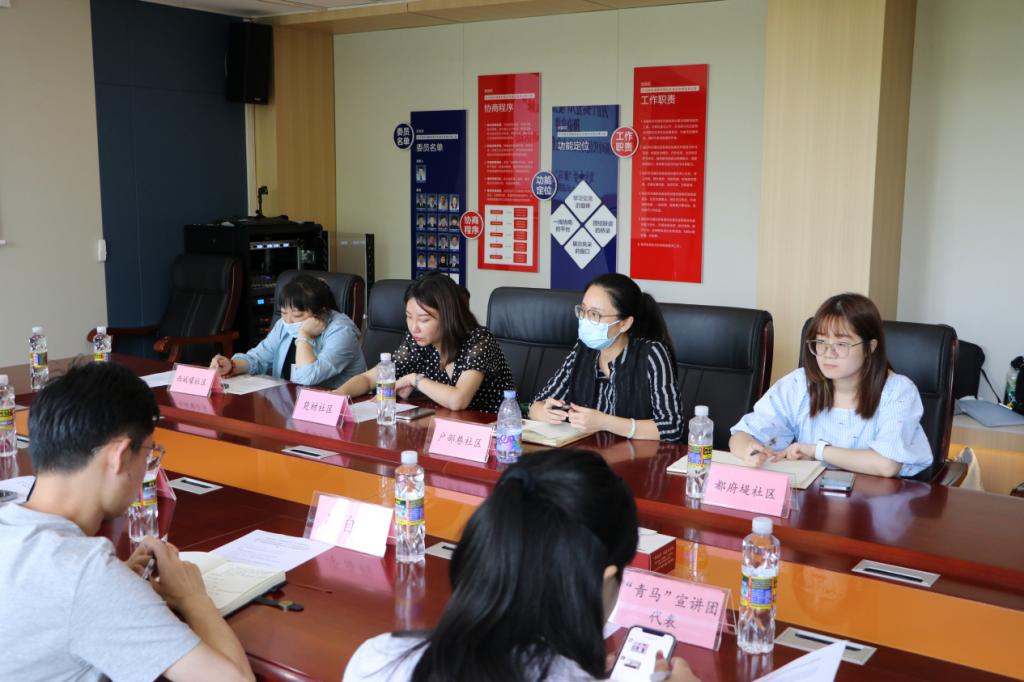 (图为实践团队同都府堤、楚材、户部巷、西城壕社区社区书记进行经验交流 通讯员 刘卓凌 供图)