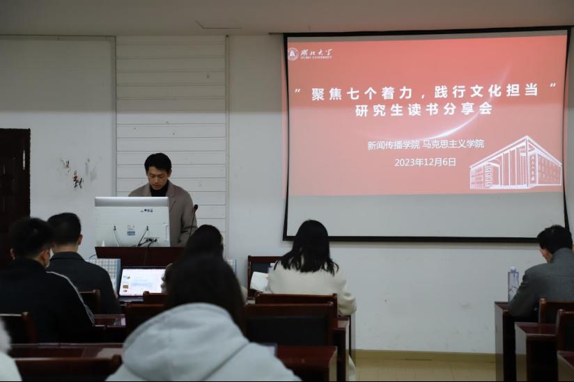 为提高研究生的学术素养和阅读能力,促进研究生之间的交流合作,深入学习习近平总书记在全国宣传思想文化工作会议中提出的“七个着力”,12月6日下午3点,公司联合新闻传播公司在逸夫楼C座4010组织开展以“聚焦七个着力,践行文化担当”为主题的读书分享会活动。William希尔官网入口辅导员冷自衍老师、新闻传播公司辅导员徐兰格老师以及两院部分研究生参加此次读书分享会,本次分享会由新闻传播公司研究生陈秋实主持。