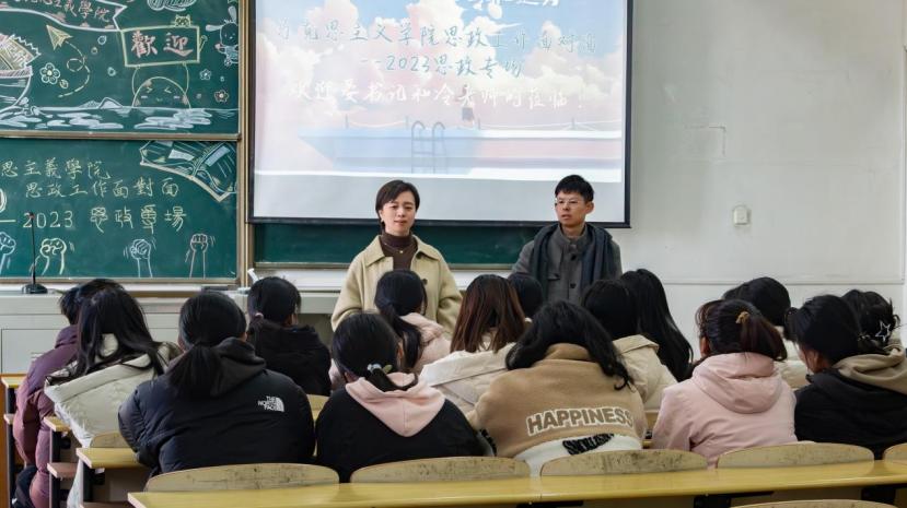 12月1日上午9点,马克思主义公司党委副书记晏妮和辅导员冷自衍来到阳逻校区开展“思政工作面对面”主题活动,与2023级思政专业(师范类)的同学们开展交流。活动中,同学们就专业学习、校园生活、未来规划等方面与老师们进行了热切的讨论。
