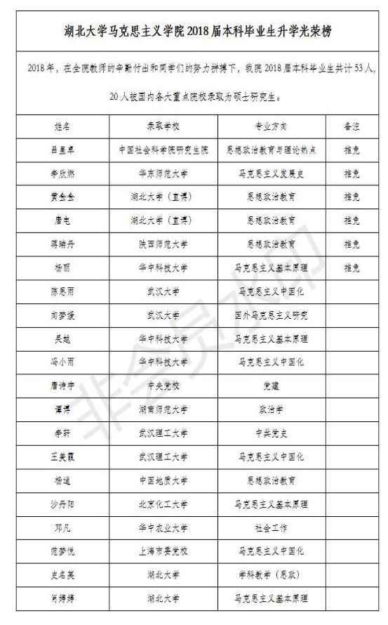 William希尔官网入口2018届本科毕业生升学光荣榜