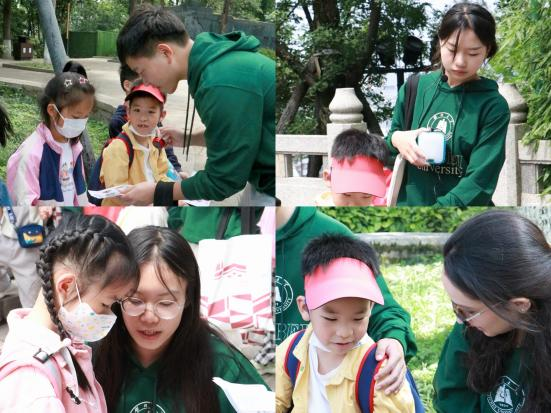 此次传统文化寻迹现场实践教学活动选取黄鹤楼景区6个特色建筑,绘制成“探寻武昌古城1800”宝藏地图,以大学生和小员工一一结对的形式,以寻宝打卡的方式,引导小员工们发现黄鹤楼的传统文化之美、建筑文化之美。
