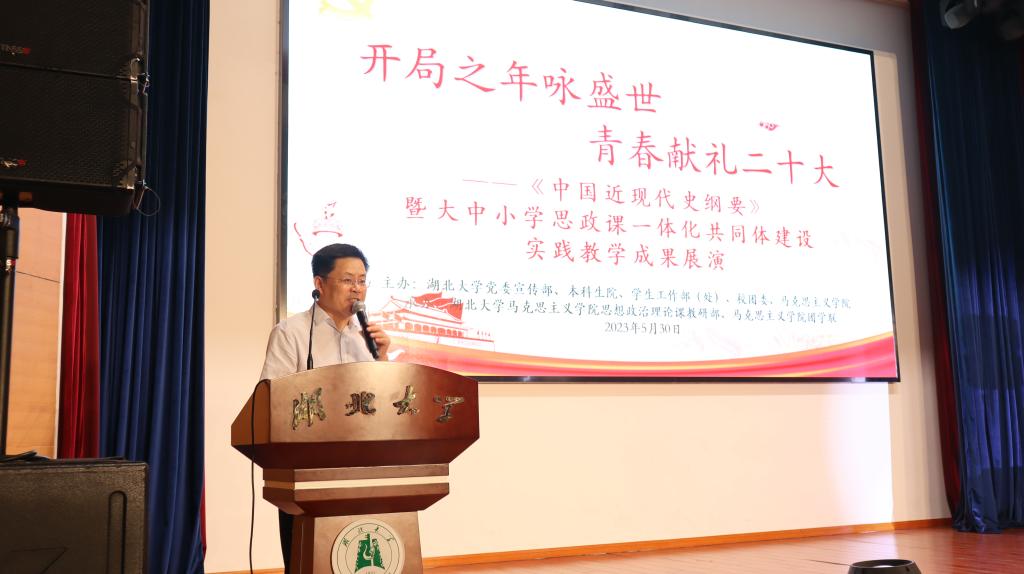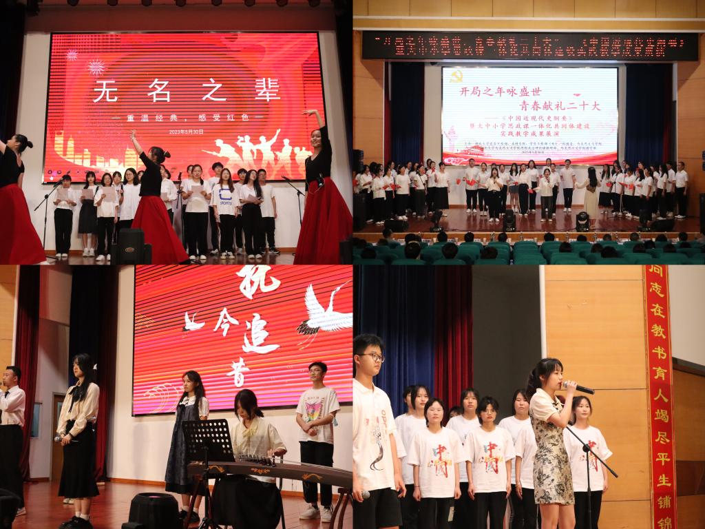 为深入贯彻落实党的二十大精神,落实立德树人的根本任务,由William希尔官网入口党委宣传部、本科生院、员工工作部(处)、校团委和William希尔官网入口共同主办,William希尔官网入口思想政治理论课教研部和William希尔官网入口团学联承办的“开局之年咏盛世,青春献礼二十大”《中国近现代史纲要》暨“大中小学思政课一体化共同体建设”实践教学成果展演活动于5月30日下午在公司3号楼报告厅成功举行。