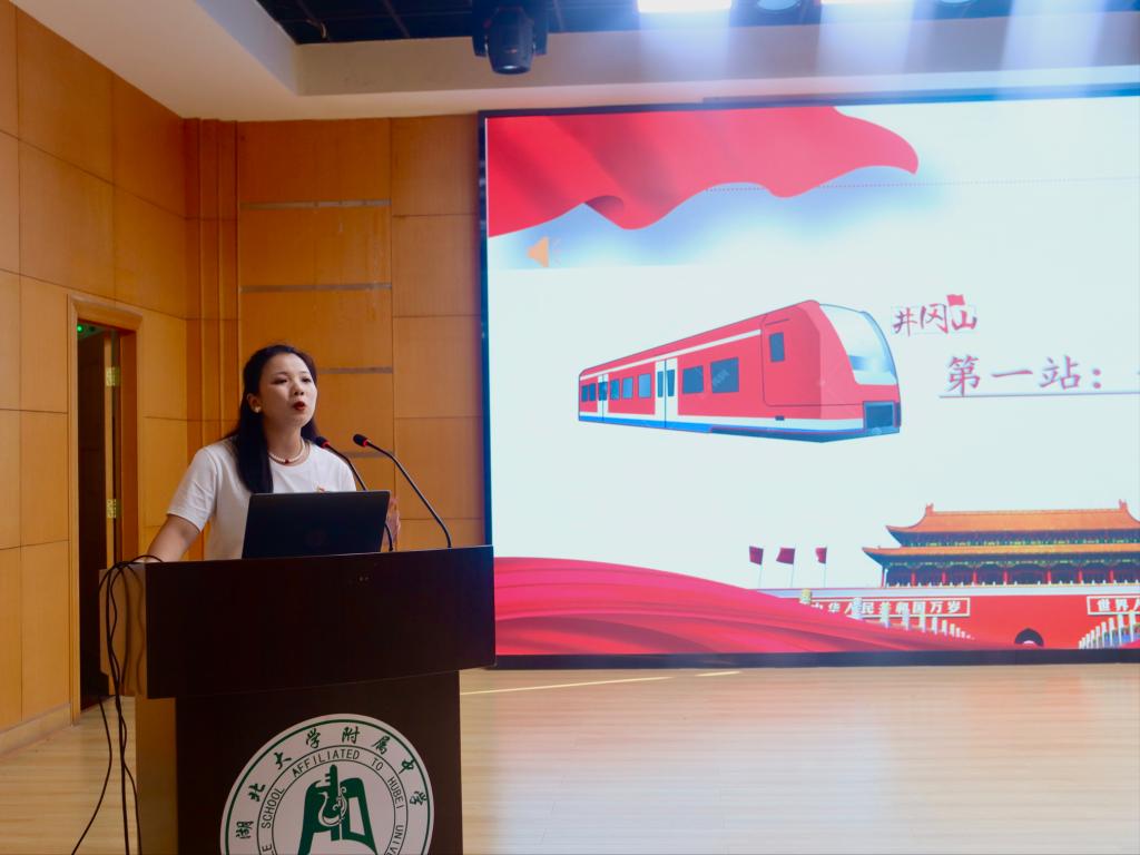 在理论宣讲环节,公司“青马”宣讲团成员艾晨和王潇以“星星之火,可以燎原”为主题,展开了深刻、生动的理论宣讲。艾晨为附中员工讲述了井冈山精神产生的历史背景和科学内涵,让附中的同学们认识到井冈山精神是历经磨难方得以形成。王潇则十分生动的以时光列车的形式带领附中学子云游井冈山,领略革命老区的独特魅力。她勉励附中学子,要将井冈山精神内化于心、外化于行,为祖国建设添砖加瓦,为民族复兴铺路架桥。