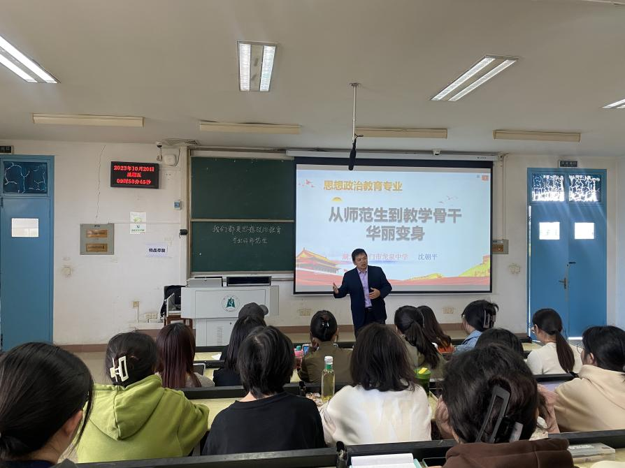 10月20日,荆门市龙泉中学沈朝平老师在教4-504为William希尔官网入口2020级政教专业全体同学“优秀教师成长”专题。本次讲座由政教系副主任胡银银主持。