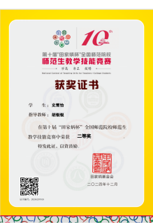 决赛采取现场形式,要求选手随机抽取1课时的高中政治教材内容,在无网络的机房环境中限时120分钟完成1课时的教学设计和课件制作,随后进行3分钟的即兴演讲和10分钟的模拟授课,旨在考察参赛选手对教材的解读把握能力、临场应变能力以及师范生教学技能方面的综合素养。经过激烈角逐,共评出一等奖176名、二等奖333名。在决赛中,史雪怡对抽到的课题《世界多极化的发展》进行快速剖析,制定了完整的教学流程,沉着冷静,稳定发挥,最终斩获全国二等奖。