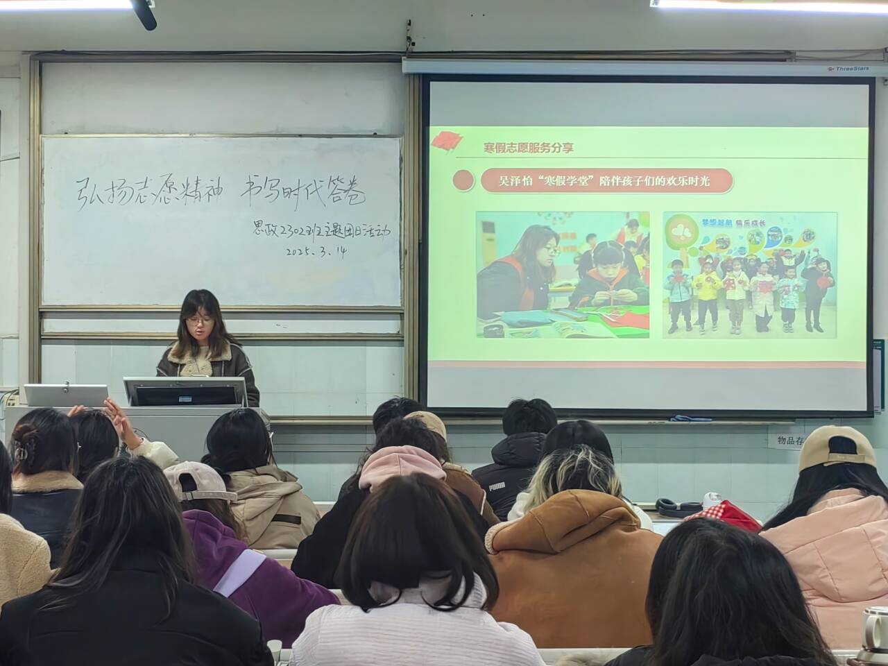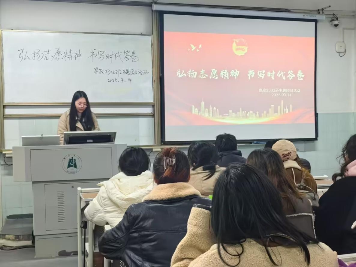 为重温雷锋同志先进事迹,深度探讨志愿精神在新时代的传承价值与实践路径,3月14日,思想政治教育2302班团支部举办“弘扬志愿精神 书写时代答卷”主题团日活动。此次活动由团支书王卓越主持,支部全体团员积极参与,思政2301班团支书特邀参加了此次活动。