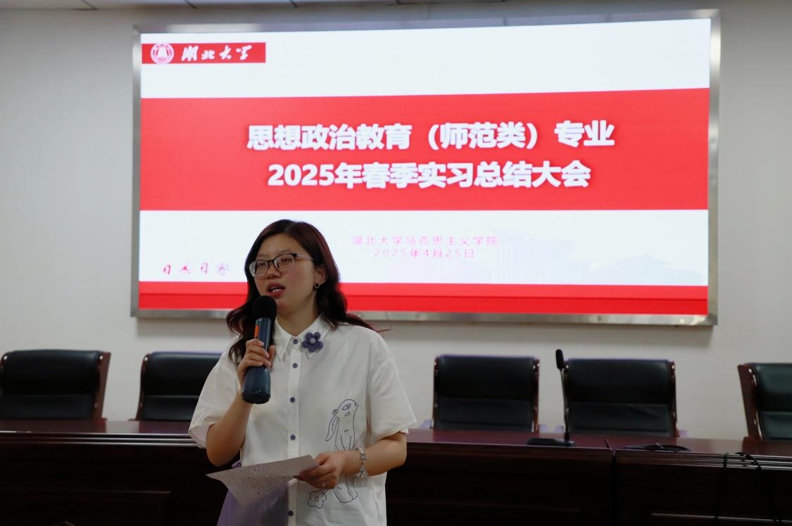 (通讯员:张万欣)4月25日上午九点,2025年度春季实习总结大会于2号教学楼410报告厅举行,会议由政教系主任胡银银老师主持,教学副经理徐信华、部分实习指导教师及全体2022级思想政治教育本科生参与会议。