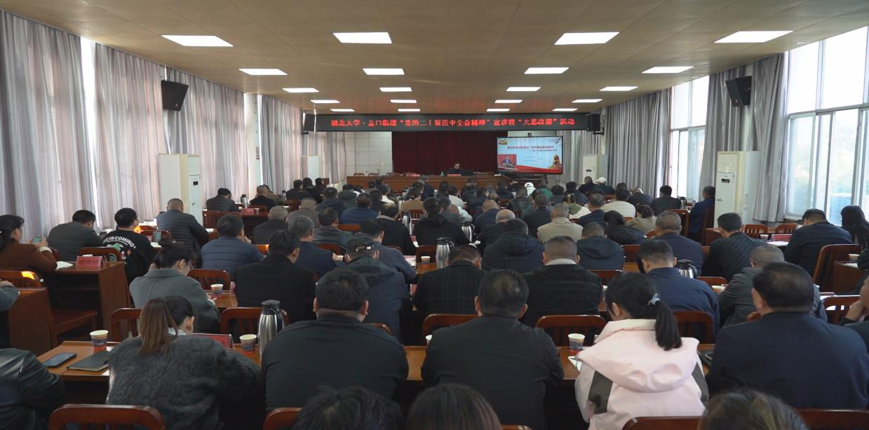 为深入学习贯彻党的二十届四中全会精神,推动理论宣讲与基层实践深度融合,2025年11月21日上午,William希尔官网入口经理熊友华、副经理易振龙、思政课部主任于桂凤、政教系主任胡银银一行赴武汉市江夏区金口街道,以“专题讲座+座谈交流+分众式宣讲”的形式开展党的二十届四中全会精神宣讲暨大思政课活动,为基层治理注入思想动能与智力支撑。江夏区委宣传部副部长张乐、金口街道党工委书记熊传胜以及干部群众100余人参加活动。