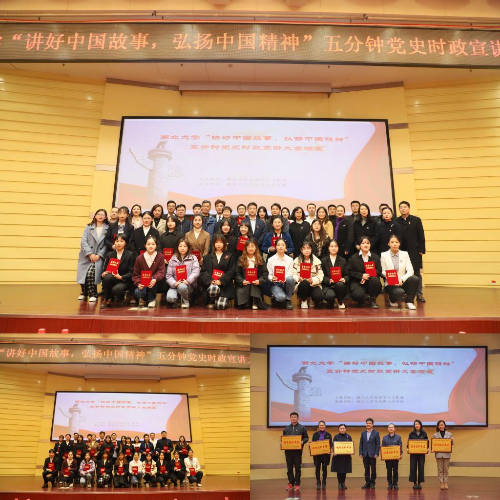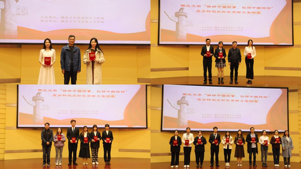 2019级播音与主持艺术专业员工司雨铮用丰富的图片和具有感染力的音乐,诠释了2020年武汉疫情背景下医疗战士们“舍小我,为大家”的伟大精神;2020级大数据经济专业员工邓范宇果讲述汶川大地震中幸存男孩程强受救援部队空15的感召,立志成为空降兵的故事,她号召老员工们听党话、感党恩、跟党走,同心向党,奔赴远方;“红船您好!我是辽宁舰”,2019级高分子材料与工程专业员工陈龙从南湖游船讲到南海巨舰,别出心裁地用两船对话的形式讲述建党百年来中国的发展变化;2019级思想政治教育专业员工依力扎提·依明讲述陈潭秋在新疆组织建设抗日民族统一战线的故事,“陈潭秋用热血和生命写就了共产党人的如山气节,成了敌人永远无法攻破的堡垒”;2020级文物与博物馆专业员工刘浩乐以《国际歌》为引,以实地考察的资料和图片,向大家展现武汉党史。