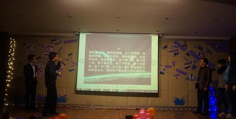汤德森书记首先宣读了新年贺词,总结了对过去一年公司的相关工作,同时表达了对新一年的祝愿和希冀。随后就公司相关成绩进行了表彰,汤书记、徐经理颁发了第二届汪彬奖学金,熊经理、周经理、王书记颁发了2015年度文明寝室奖励。