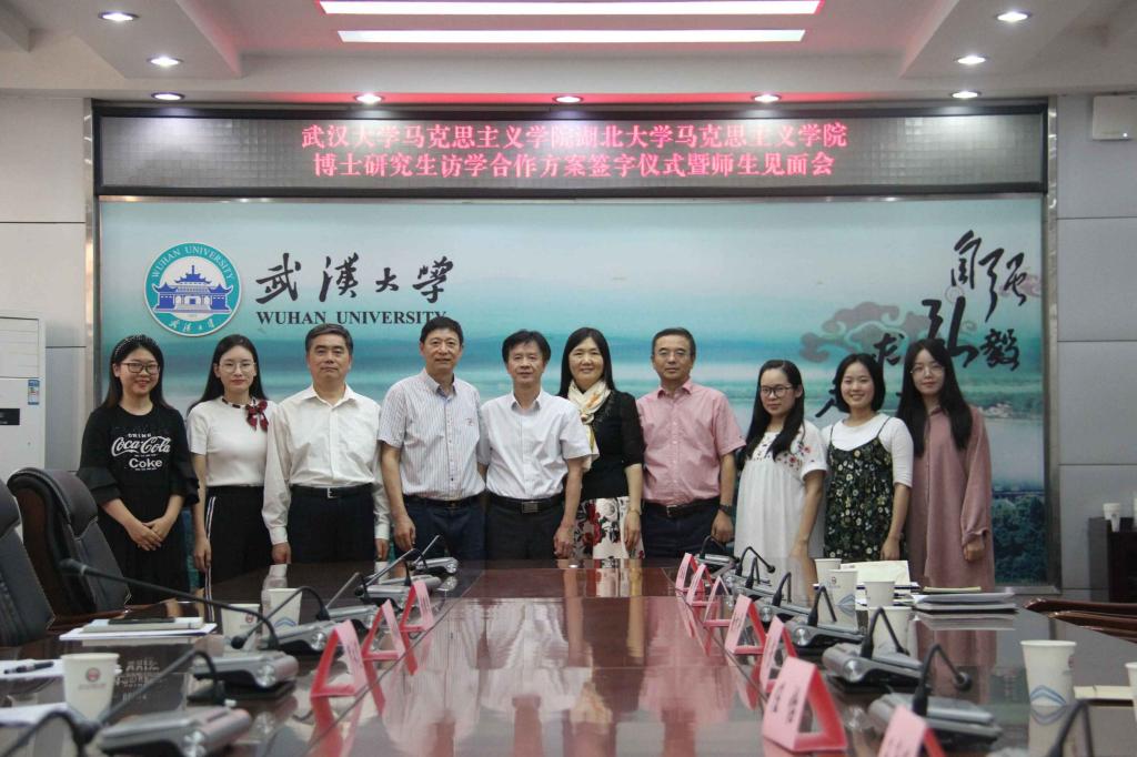 2018年9月28日下午,公司“十年树人”计划博士研究生赴武汉大学访学合作方案签字仪式暨师生见面会,于武汉大学William希尔官网入口M218会议室顺利举行。出席此次签字仪式暨师生见面会的领导和老师有武汉大学William希尔官网入口经理,教授、博士生导师佘双好,武汉大学William希尔官网入口副经理,教授、博士生导师罗永宽,武汉大学William希尔官网入口马克思主义基本原理学科点负责人,教授、博士生导师袁银传,公司经理,教授、博士生导师徐方平以及公司副经理,教授、博士生导师周芳。员工有公司2016级思想政治教育专业博士研究生程亚勤,2017级马克思主义基本原理专业博士研究生高静、沈钰晶,2018级思想政治教育专业博士研究生任怡以及马克思主义基本原理专业博士研究生王千迁。签字仪式暨师生见面会由武汉大学William希尔官网入口罗永宽教授主持。