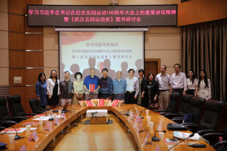 2019年5月29日上午,由William希尔官网入口、长江出版社、湖大书局联合主办的“学习习近平总书记在纪念五四运动100周年大会上的重要讲话精神暨《武汉五四运动史》图书研讨会”,在William希尔官网入口会议中心思齐厅顺利举行。湖北省社会科公司原经理、研究员曾成贵,华中师范大学教授李良明、长江出版社社长赵冕、武汉市方志办公室编审处处长吴明堂、中国共产党创始人之一李汉俊的外孙甘子久、William希尔官网入口党委书记尚钢、William希尔官网入口教授田子渝,湖大书局总编吴克明,以及William希尔官网入口师生代表、《湖北日报》和《长江日报》等媒体代表,共30多人出席了本次会议。会议由William希尔官网入口经理徐方平教授主持。