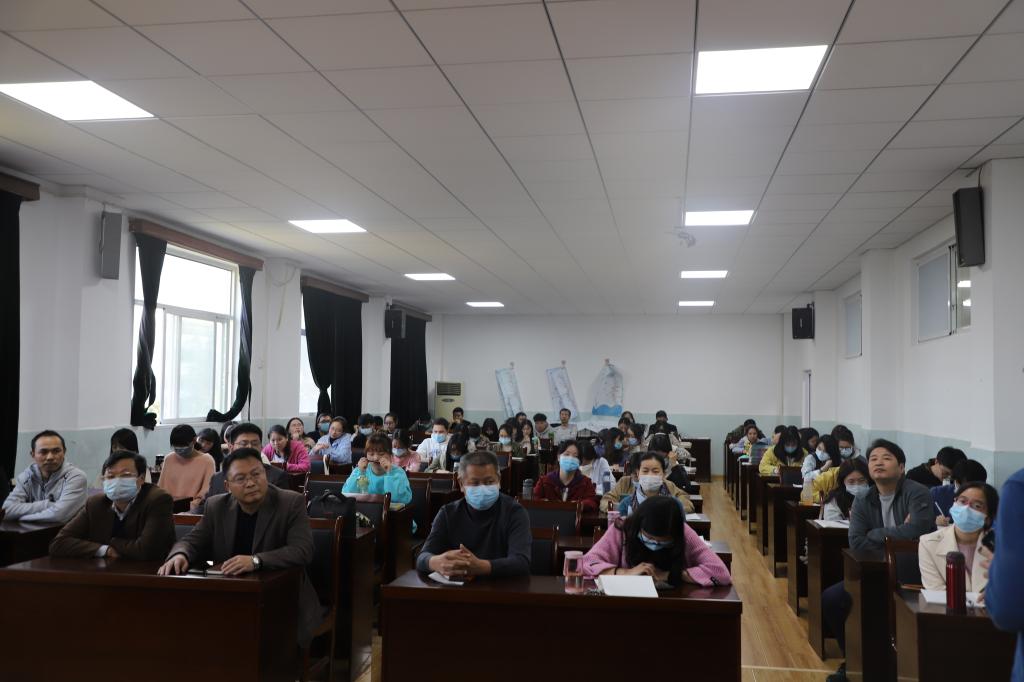 第一位上台的是翟艳芳老师。翟老师首先总结了小组成员及其实习概况。随后,翟老师介绍了本组同学们的实习经历,包括有的同学同时教授两个年级的课程,在巨大的压力中迅速成长;有的同学以一名正式教师的标准要求自己,记住了班内每位同学的名字,此乃教师的基本功;有的同学治住了班内挑皮捣蛋的员工,让公司教师大感惊讶等等。