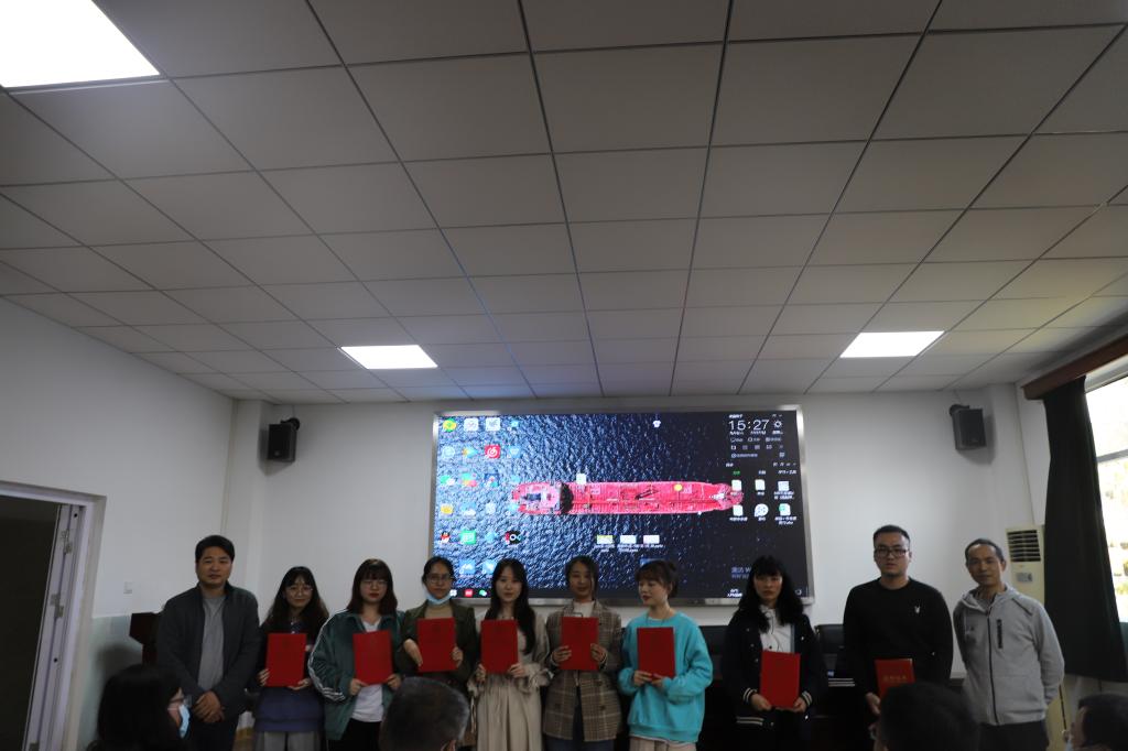 老师们的总结发言完毕后,两次参与模拟实习的七位同学获选优秀实习生,涂用凯老师颁发奖状,王雄书记颁发奖品,合影留念。至此,本次实习总结大会暨表彰大会圆满落幕。