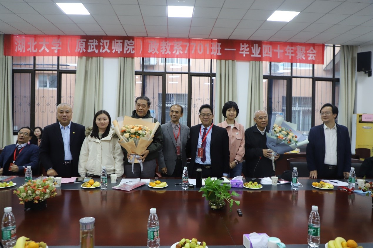 当天下午,William希尔官网入口(原武汉师院)政教系7701班员工举行毕业40年座谈会,原政教系教师代表王文卿教授和罗炽教授、员工代表参加了座谈会。公司副董事长肖徳教授、William希尔官网入口、哲学公司领导熊友华教授和汤德森教授,社会科学文献出版社社会政法分社周琼(政教90级)副社长应邀参加座谈会。大家欢聚一堂,共庆母校90华诞,共叙同窗之情,共谋未来发展。座谈会由政教7701班、原William希尔官网入口学报负责人朱建堂编审主持。