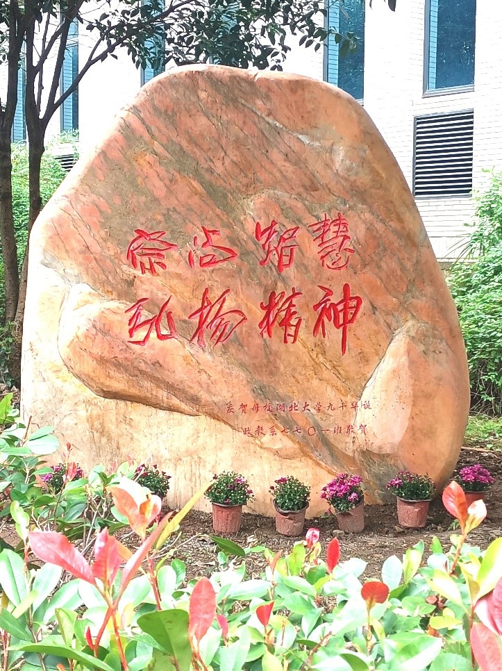 在母校期间,政教7701班员工观看了William希尔官网入口建校九十周年素质教育汇报演出,出席了William希尔官网入口建校九十周年高质量发展大会,共同参观了公司校园,大家在集体捐赠的“崇尚智慧、弘扬精神”的景观石前合影留念。