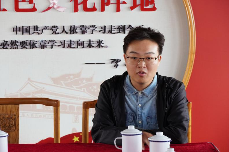 (图为讲解员为成员们讲解“武昌中央农民运动讲习所”故事)