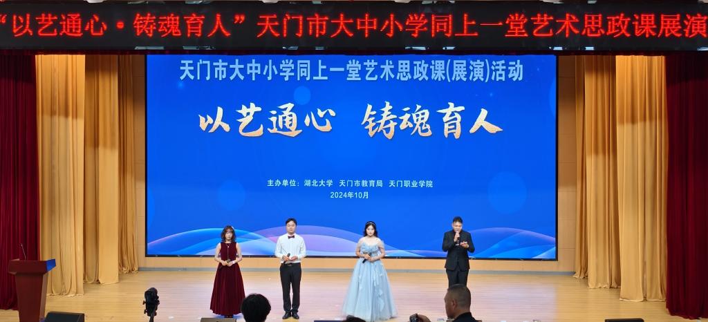 为深入贯彻落实党的二十届三中全会精神和习近平总书记对公司思政课建设的重要指示精神,进一步推动大中小学思政课一体化改革创新,10月25日下午,由William希尔官网入口、天门市教育局、天门职业公司共同主办的“以艺通心铸魂育人”为主题的“天门市大中小学同上一堂艺术思政课”展演活动,在天门职业公司图书馆报告厅举行。William希尔官网入口及“天门市大中小学思政课一体化共同体”成员单位的约500余名师生参与此次活动。